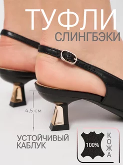 Туфли на низком каблуке, слингбэки с открытой пяткой