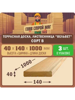 Террасная доска лиственница сорт В 40х140х1000 3шт