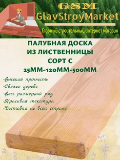 Палубная доска лиственница сорт C 25x120x500 1шт