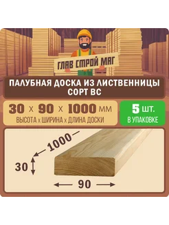 Палубная доска лиственница сорт BC 30x90x1000 5шт