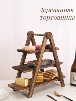 Блюда-этажерка для десерта и торта деревянная трехъярусная
