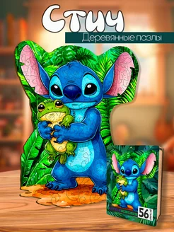 Деревянные пазлы для детей Стич с жабой