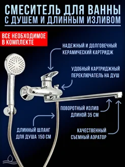 Смеситель для ванны с душем и краном полный комплект