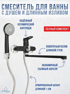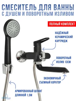 Смеситель для ванны с душем и краном черный однорычажный