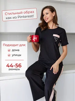 Домашний костюм двойка лапша с брюками в рубчик оверсайз