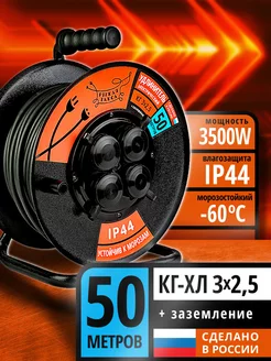 Удлинитель силовой на катушке 50м КГ-ХЛ 3*2,5 с заземлением