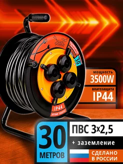 Удлинитель на катушке 30м ПВС 3*2,5 силовой с заземлением
