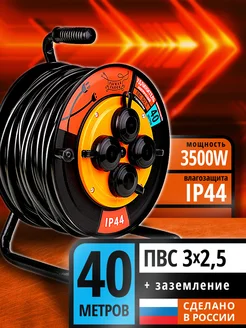 Удлинитель на катушке 40м ПВС 3*2,5 силовой с заземлением