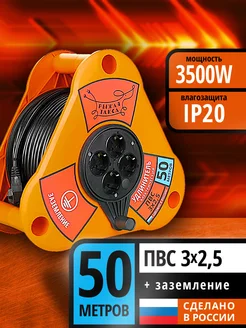 Удлинитель силовой на катушке 50м ПВС 3*2,5 с заземлением