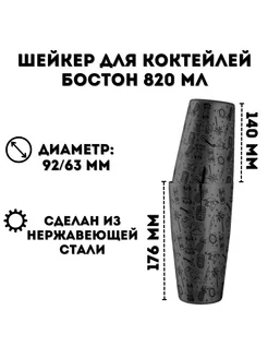 Шейкер Бостон для коктейлей 820 мл черный металлик