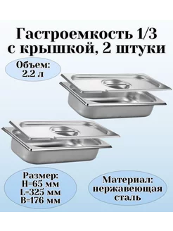 Гастроемкость GN 1 3 х 65 мм с крышкой с вырезом 2 штуки