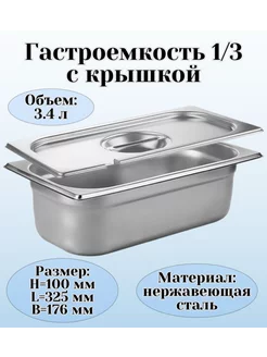 Гастроемкость GN 1 3 х 100 мм с крышкой с вырезом
