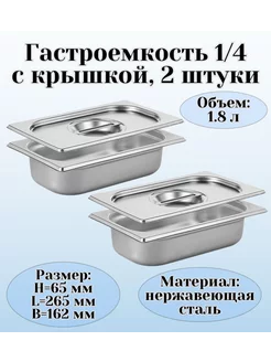 Гастроемкость GN 1 4 х 65 мм с крышкой 2 штуки