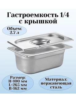 Гастроемкость GN 1 4 х 100 мм с крышкой с вырезом