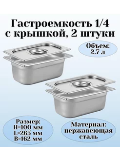 Гастроемкость GN 1 4 х 100 мм с крышкой 2 штуки