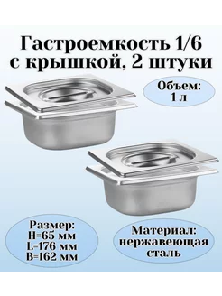 Гастроемкость GN 1 6 х 65 мм с крышкой 2 штуки