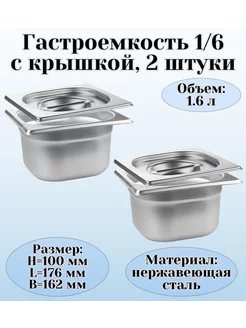 Гастроемкость GN 1 6 х 100 мм с крышкой 2 штуки