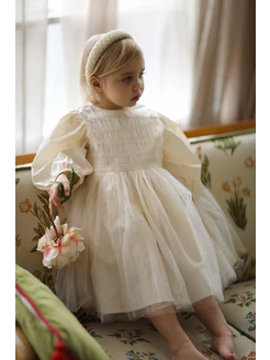 Платье праздничное пышное с длинными рукавами и завязками