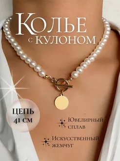 Колье с искусственным жемчугом, стильная бижутерия