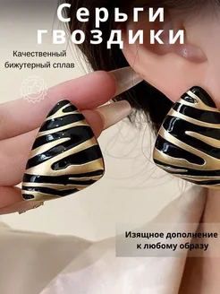 Большие серьги треугольники тигровые, бижутерия, пусеты