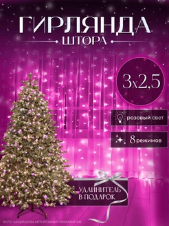 Гирлянда штора 3x2,5 розовый на окно