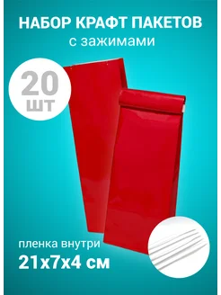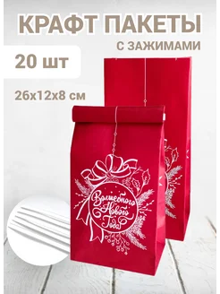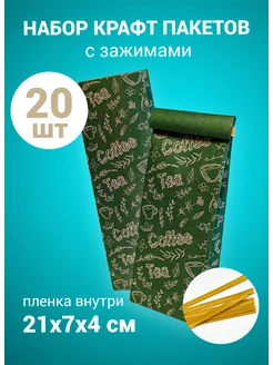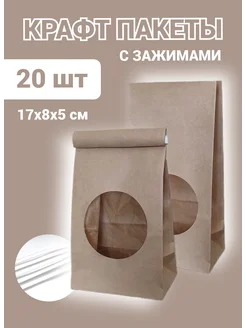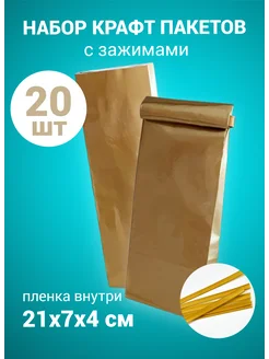Крафт пакеты бумажные, набор 20 шт с зажимами