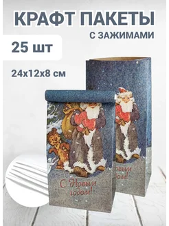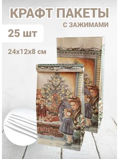 Крафт пакеты новогодние для подарка, набор 20 шт