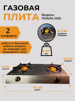 Газовая настольная плита Тельпа 2425, 2 конфорки, серая