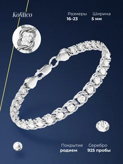 Браслет серебряный 925 пробы с цирконием родированный