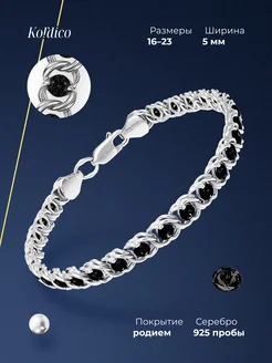 Браслет серебряный 925 пробы с черной шпинелью родированный
