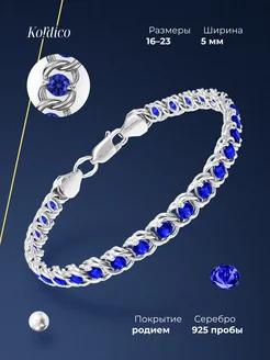 Браслет серебряный 925 пробы с сапфиром родированный