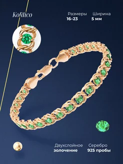 Браслет серебряный 925 пробы с нано изумрудом позолоченный