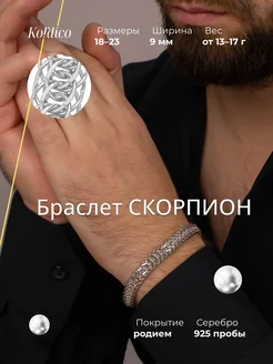 Браслет мужской Скорпион серебро 925 проба, родированный