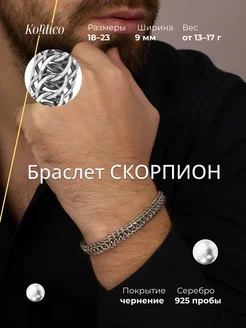 Браслет мужской Скорпион серебро 925 проба, оксид