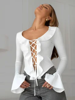 Вечерний укороченный кроп топ с длинными рукавами в рубчик