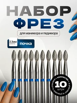 Фрезы для маникюра почка олива, 2,3 мм, синие