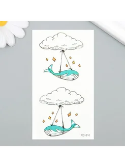 Татуировка на тело цветная "Кит летит на облаке" 6х10,5см