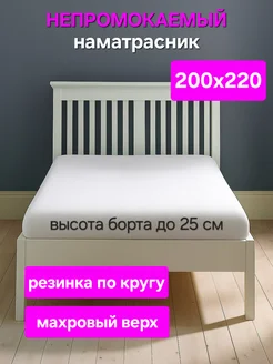 Наматрасник 200х220 см непромокаемый на резинке с бортом