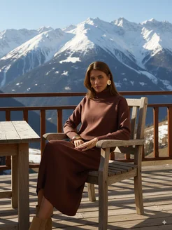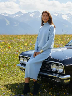 Костюм трикотажный с высоким горлом и юбкой миди