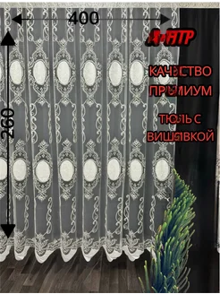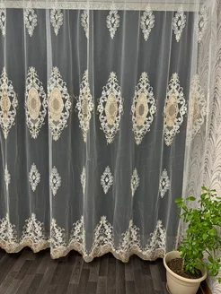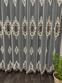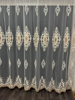 Тюль сетка с вышивкой и бархатной каймой 300х260