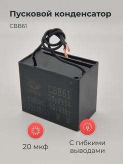 Конденсатор CBB61 20мкф 450v с гибкими выводами