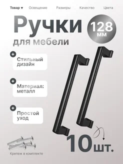 Ручки мебельные металлические для кухни 128 мм черные 10 шт