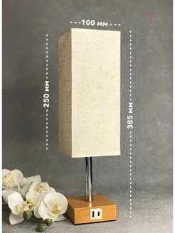 Лампа настольная прикроватная с абажуром USB порт