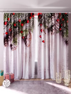 Новогодние шторы в гостиную и спальню 2 шт 150х260 см