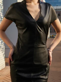 Платье-футляр из эко-кожи чёрное, миди, бренд
