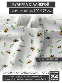100х175см Кулирка с лайкрой - Пчелки на белом
