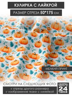 50х175см Кулирка с лайкрой - Тыквы на белом