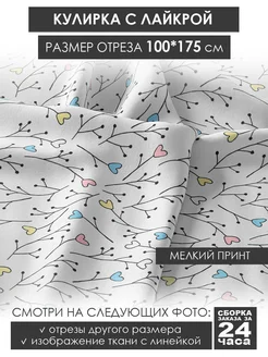 100х175см Кулирка с лайкрой - Веточки с сердцами