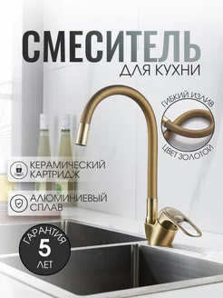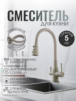 Смеситель для кухни бежевый с силиконовым изливом