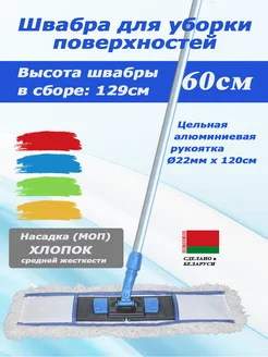 Швабра 60 см хлопок с цельной ручкой